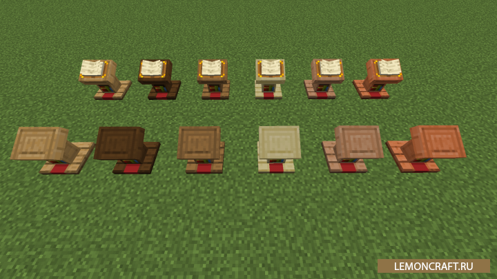 Мод на предметы и блоки из дерева I Like Wood добавит в игру большое количество новых предметов и блоков из дерева, цветовая гамма которых будет соответствовать материалу из которых они созданы. В игре появятся новые заборы, бочки, сундуки, кровати и верстаки. Все предметы можно создать из темного и светлого дуба, акации, березы, дерева из джунглей и ели.